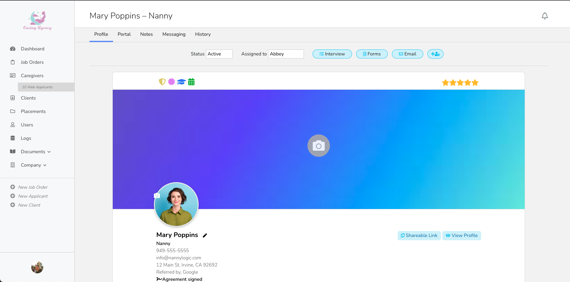 Log into your own NannyLogic portal from anywhere to run your agency, take orders, and make placements.