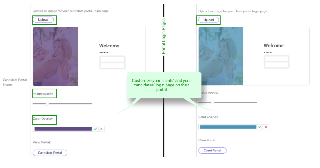 Learn how to brand your clients’ and candidates’ portal login pages. See the image below.