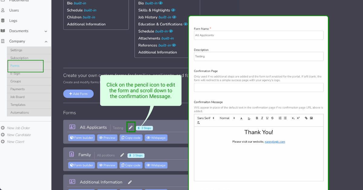 You have the option to tailor the confirmation page for each form you create, allowing for a more personalized experience on your platform. Follow these steps to enhance the customization of your platform: