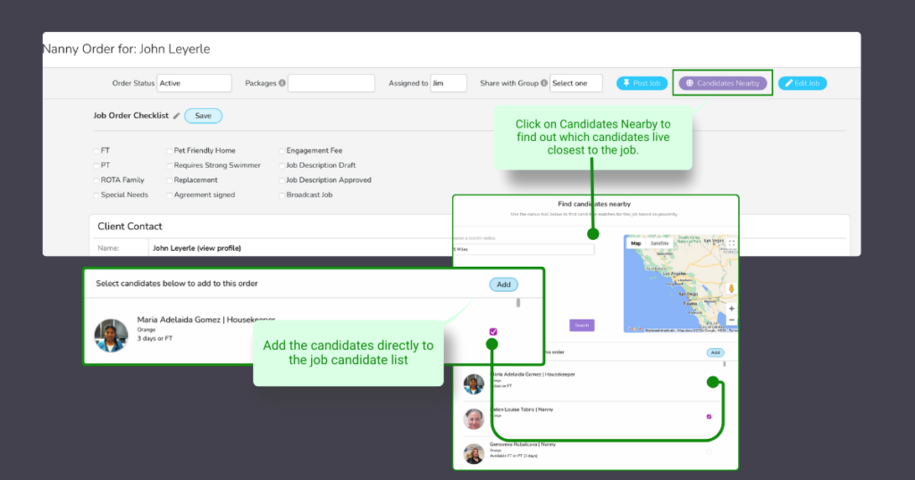 Once you have the list of candidates, you can directly add them to the job order, considering them as potential candidates for further evaluation. By doing this, you can begin building your candidate list specifically for that job.